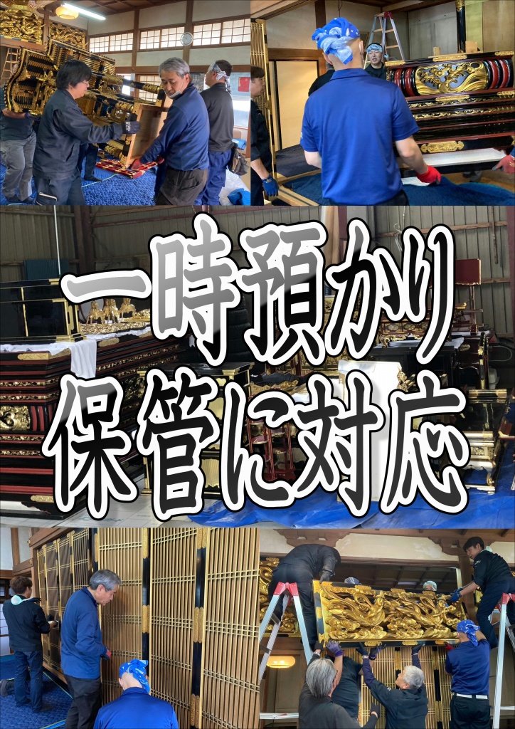 お寺の建て替えやリフォーム時に発生する仏像や仏具の保管。建て替え完成までの長期保管や一時預かりなども職人直営価格にてお受けさせて頂いております。