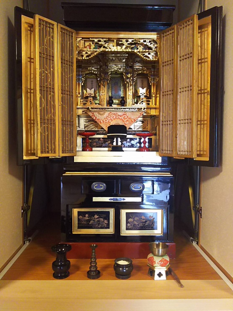 【仏壇クリーニング】昔からお仏壇の向きには諸説ありますが、方角には吉凶はなく、昨今の住宅事情もあり、設置場所が制限されてしまうこともあると思います。制限がある場合には次の点にご注意いただければお仏壇はどの方角に安置してもよいとされています。(一般的には北向きは避けて置くとされております。) 家族の方がお参りしやすい場所に置かれることが大切です。(どうしても決められない場合には菩提寺に相談されてください。)【ご注意点】 ●直射日光に当たらない場所を選ぶ ●風通しのよい場所を選ぶ ●ジメジメしていない場所を選ぶ ●エアコンのかぜが直接当たらない場所を選ぶ ●水回りは避ける ●神棚と向かい合わせにしない。下に昔から言われいている諸説を記します。参考にされてください。【西方浄土説(東面西座説)】 西方浄土(極楽浄土)の方向にある西に向かって拝めるように、仏壇を東向きに安置する考え方です。仏壇を通して西の方角の仏さまを拝むということになります。 阿弥陀如来をご本尊とする浄土真宗、浄土宗、天台宗の3つの宗派は仏壇を東向きに置くことが多いです。【南面北座説】仏壇の背を北側にして、仏壇を安置する考え方です。仏壇に直射日光があたらず、風通しもよいので、家のなかで最適な仏壇の安置場所になります。また、釈迦が説法をするときに南向きに座っていたことから、仏壇の北向きはよくないと言われるようになったようです。曹洞宗・臨済宗等はこの説の場合が多いです。【本山中心説】仏壇の前に座って、拝む延長線上に宗派の総本山がある方向に安置する考え方です。仏壇を通して本山に正対して拝むということになります。真言宗はこの説の場合が多いです。お仏壇はお寺の本堂を小さくしたものです。そのため、お仏壇の飾り方も各宗派によって異なります。ここでは各宗派の標準的な祀り方をご紹介します。 ご参考にしていただき、ご先祖供養をおこなっていただきたいと思います。(地域や分派によって若干ことなる場合もございます。また、仏壇・仏具の大きさ、種類によっても多少の違いが出てまいります。)仏具もお仏壇の洗いと同様、洗浄、磨き、色付け、各種メッキ、修理などできれいな姿によみがえります。ご先祖様、亡き人を想い、いつも手を合わせてきたお仏壇。 そこにあることで心の安らぎが得られ、精神的なゆとりがもてる存在です。 皆様にとって大切な存在であるお仏壇を次世代に伝えていただけるよう、心をこめてていねいに仏壇洗浄、仏壇修復いたします。傷んだ部分のみの修復から仏壇洗浄、また最高品質の洗い(=仏壇お洗濯:新品同様にすること)まで 幅広く承っております。お仏壇の修理、修復、洗いに関することは何でもお気軽にご相談ください。 お見積りは無料で承ります。