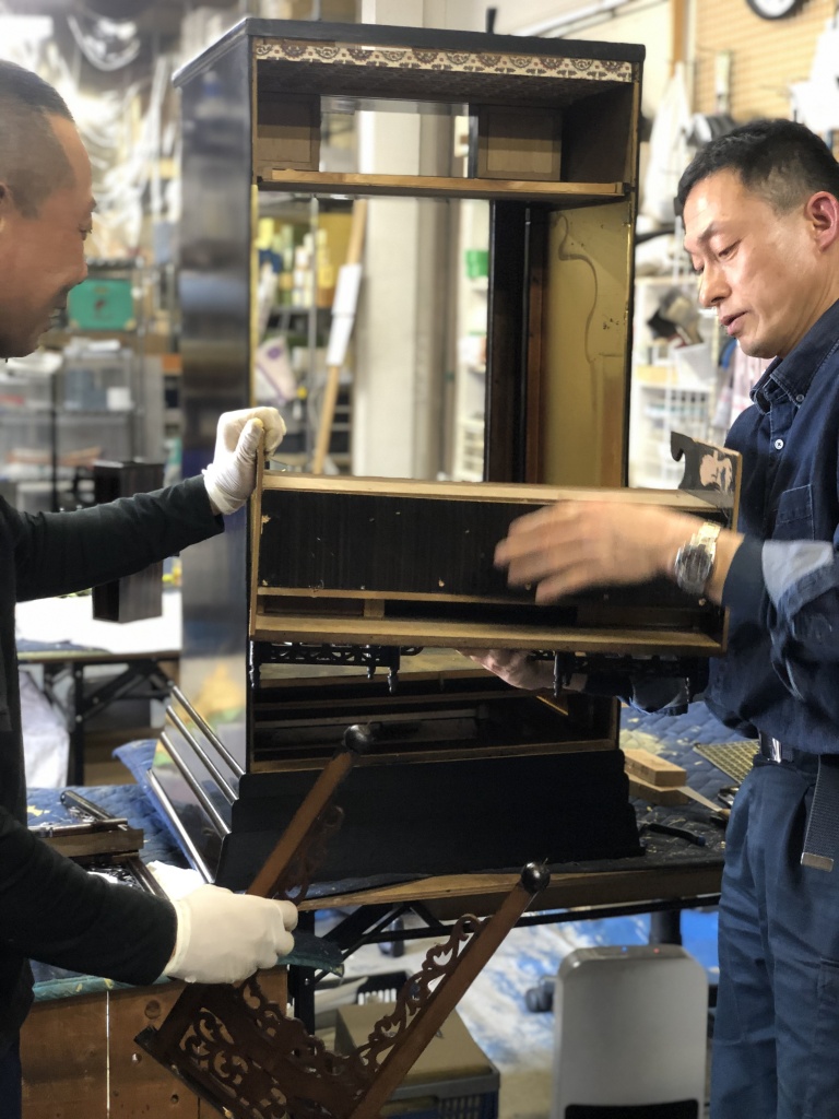 お仏壇を一つ一つの部品に分解します。そのうえで、使える素材は